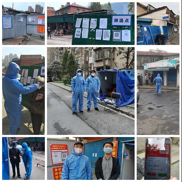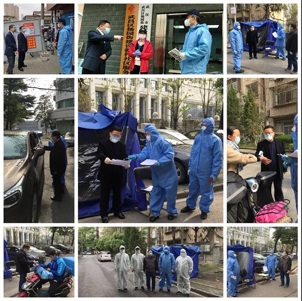 3月2日,时明国、王楠、杨恩利、朱利明、文峰、董胜男、魏炜、苏功学、熊承煦等9名同志闻令而动,全员到建设新村社区报到。建设新村社区是一个典型的开放式老旧社区,小区基本没有物业管理和隔挡,进、出口非常多,且高龄居民占比较大,小区内还有当时疫情的重灾区武昌医院东、西2个院区,人员流动量大,健康状况复杂,但大家都义无反顾,争做先锋。