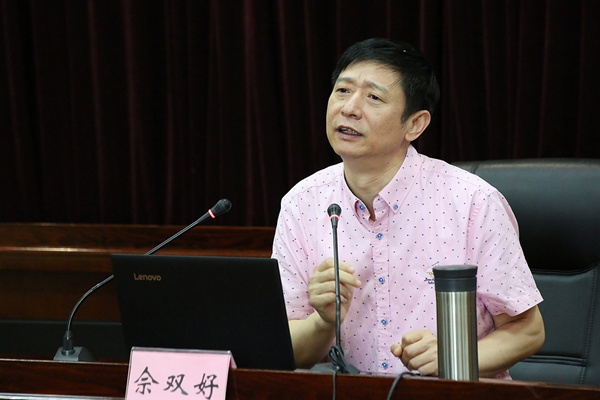9月18日,省生态环境举行《习近平谈治国理政》第三卷宣讲报告会。省委宣讲团成员、武汉大学马克思主义学院院长佘双好教授作宣讲。会议由厅党组书记、厅长吕文艳同志主持,厅系统全体党员干部550余人采取视频会议形式和云视讯方式参加宣讲,会议共设18个会场。