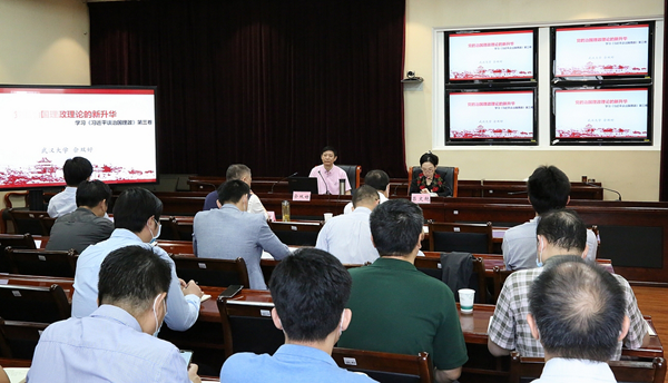 佘双好教授以《党的治国理政理论的新升华》为题。从“治国理政第三卷的总况、治国理政理论的新升华、治国理政第三卷学习要求”三个方面对学习《习近平谈治国理政》第三卷作了系统梳理、学习指导和理论解读,深入浅出地阐述了《习近平谈治国理政》第三卷的真谛意义、精髓精华。大家纷纷表示,此次宣讲报告数据丰富,事例翔实,既有理论深度,又有现实针对性,有助于帮助我们加深理解《习近平谈治国理政》第三卷关于习近平生态文明思想的重要论述。为我们学懂弄通做实习近平新时代中国特色社会主义思想,系统掌握贯穿马克思主义立场观点方法有很大的指导的帮助作用。