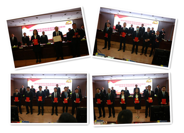 会议在庄严的国歌声中拉开序幕。在宣读《国家统计局湖北调查总队关于及时奖励湖北国调系统抗击新冠肺炎疫情集体和个人的决定》《国家统计局湖北调查总队党建工作领导小组办公室 中共国家统计局湖北调查总队直属机关委员会关于湖北国调系统抗击新冠肺炎疫情先进基层党组织和优秀共产党员评选结果的通报》后,出席会议的总队领导为获得及时奖励的集体和个人代表颁发了荣誉证书和奖章。