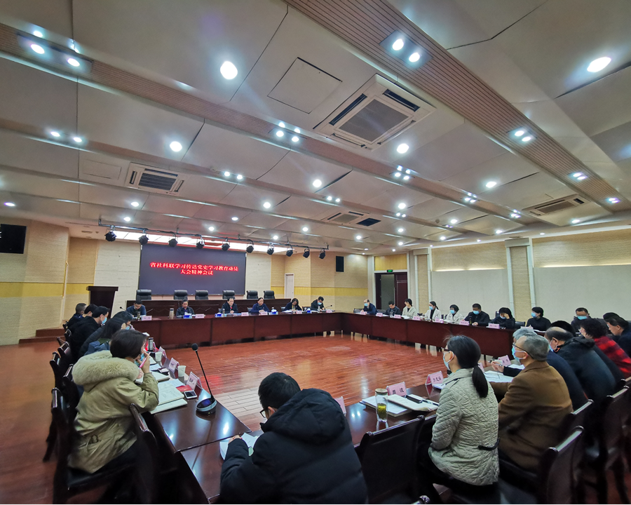 喻立平同志强调,要明确目标任务,把握好“学什么”的问题。认真贯彻党中央《关于在全党开展党史学习教育的通知》和《湖北省委<关于在全省开展党史学习教育的实施方案>的通知》,深刻领会把握学习教育的总体要求,明确目标任务和学习内容,结合实际抓好贯彻落实。要加强组织领导,把握好“怎么学”的问题。把党史学习教育作为一项重大政治任务,党组要加强组织领导,切实履行主体责任,迅速成立党史学习教育领导小组和工作机构,结合省社科联实际抓紧制定学习教育实施方案。要立足实际,发挥社科优势,将学习教育的总体要求、目标任务贯彻落实到社科联的各项工作中,充分利用基金项目、课题、科普、讲坛、刊物、网站等平台,组织和引导社科界加强党史学习教育和研究宣传。全体党员要强化使命担当,切实为群众办实事,真正学出坚强党性、学出信仰担当,切实把学习教育抓紧抓实、抓出成效。