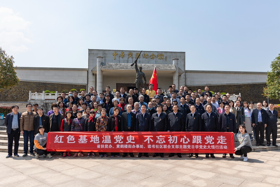 4月9日,省扶贫办与黄鹤楼街道、读书社区共90多名党员干部赴大悟红色教育基地联合开展党史学习教育和祭英烈活动,深入推动党史学习教育走深走实。