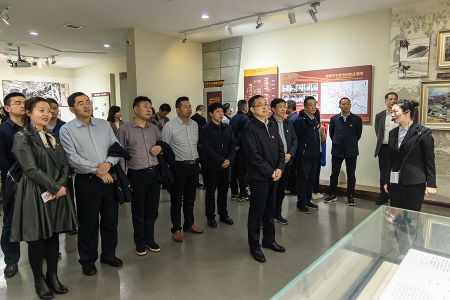 随后,在讲解员的引领下,全体党员干部一起参观了中原突围纪念馆。