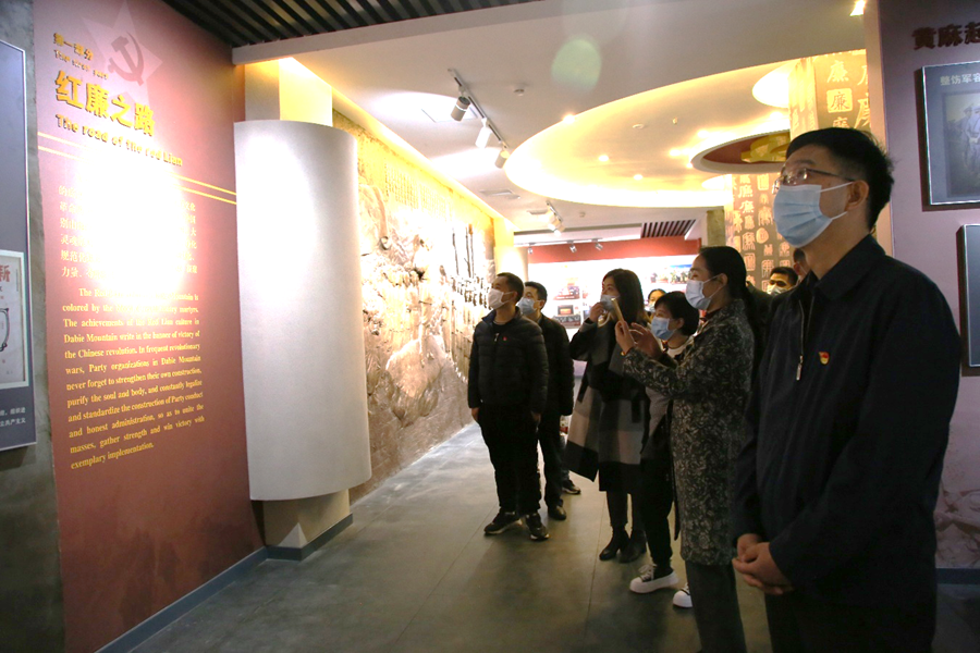 随后,大家参观了鄂豫皖红军发展史陈列馆和大别山红廉文化馆,通过讲解员的生动讲解和丰富的图片展示,详细了解了老一辈共产党人前赴后继的光辉历程和丰功伟绩。在大别山红廉文化馆,“三不准”“五严禁”,李先念处决干部、王树声补种玉米苗,一条条禁令、一个个感人至深的廉政故事,让全体党员感受到了革命先辈坚贞不屈的信仰、艰苦奋斗的作风、严于律己的品质,也深刻感悟到了革命先烈对党和人民无限忠诚、无私无畏的崇高品质。党员们纷纷表示,要继承革命先烈遗志,进一步增强责任感和使命感,弘扬党的优良传统和作风,以更加昂扬的斗志、更加振奋的精神、更加务实的作风、更加严明的纪律,推动学院各项工作迈上新台阶,以优异的成绩向建党一百周年献礼。