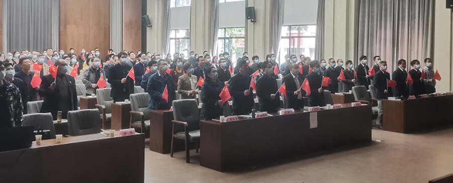 党课最后,全体党员手执党旗,齐唱诞生在新中国前夜的经典音乐作品《没有共产党就没有新中国》,一起用歌声向党的百年华诞献礼,在歌声中汲取前进的动力。