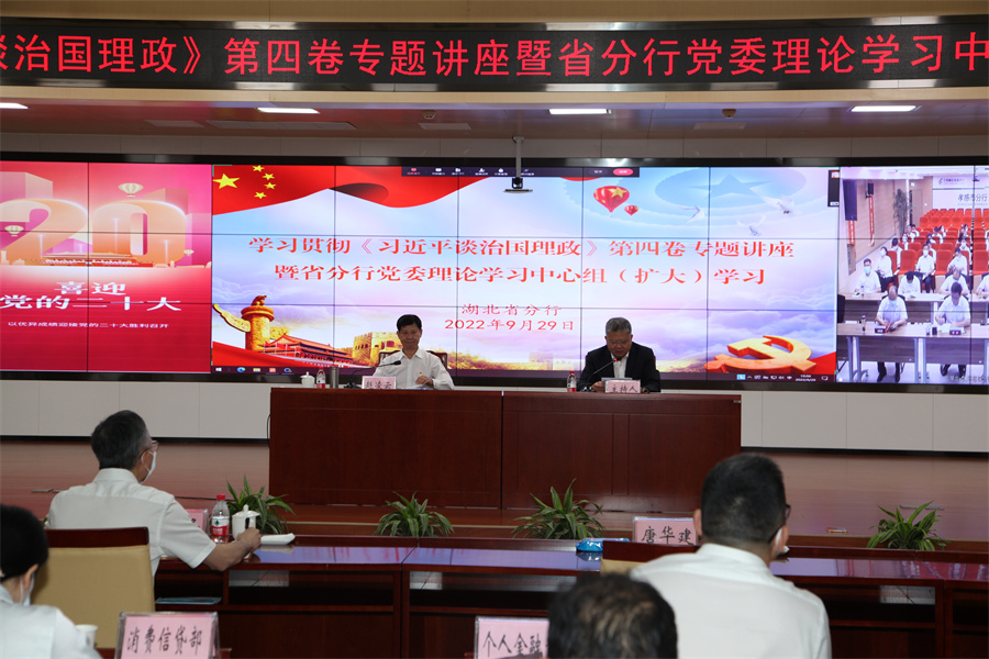 近日,邮储银行湖北省分行召开贯彻学习《习近平谈治国理政》第四卷和习近平总书记在省部级主要领导干部专题研讨班上重要讲话精神专题辅导会,省委宣讲团成员,华中师范大学党委书记、省社科联主席赵凌云教授为全行党员干部作专题辅导报告。专题辅导会以邮储银行湖北省分行党委理论学习中心组形式扩大到市州分(支)行、一级支行,全省1550名党员干部参与学习。