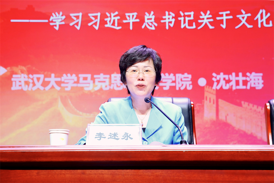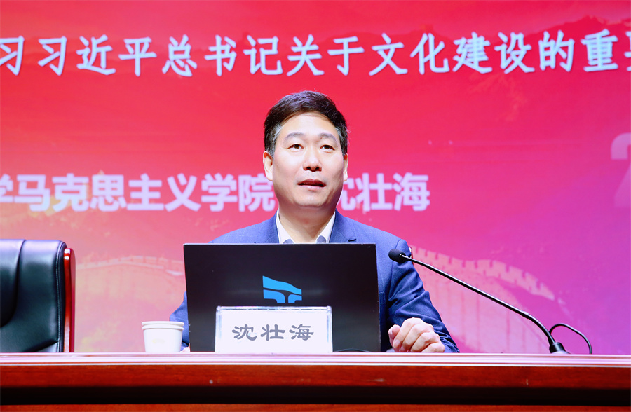 厅党组书记、厅长李述永主持专题辅导讲座并讲话。省委宣讲团成员、武汉大学党委副书记、马克思主义学院院长沈壮海教授作了题为《推动社会主义文化繁荣兴盛》的辅导讲座。沈壮海教授从“文化”与“文明”之辩谈起,分析了“文化”与“文明”的异同;从文化情怀、时代背景、关键文本、科学体系、鲜明特色、历史地位六个方面,系统阐释了习近平总书记关于文化建设的重要论述。使大家对习近平总书记关于文化建设重要论述精神有了更加准确、更加透彻、更加深刻的理解,对落实好省第十二次党代会精神、推动文化和旅游高质量发展有了更加清晰、更加具体、更加系统的认识。