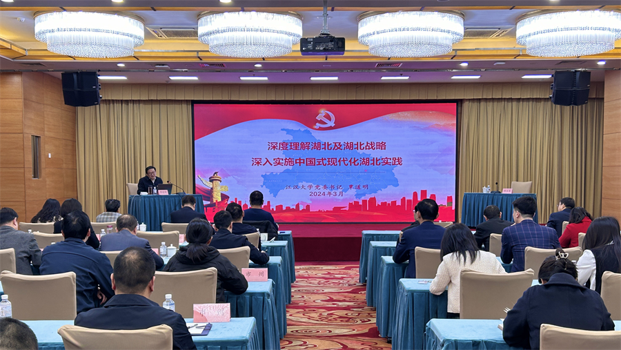 3月26日,省驻京单位党委在北京湖北大厦举办湖北省发展战略宣讲报告会。江汉大学党委书记覃道明作宣讲辅导报告。省驻京办党组成员、副主任韩永发主持会议。