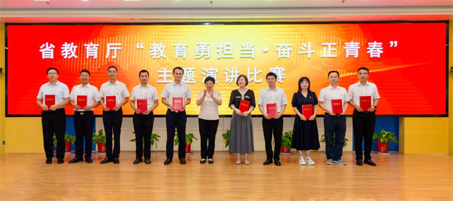 省教育厅“教育勇担当 奋斗正青春”决赛现场,厅党组书记、厅长周静同志为获奖人员颁奖。