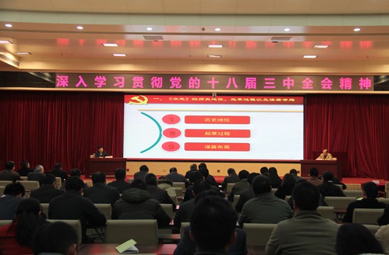 孙亚着重介绍了《中共中央关于全面深化改革若干重大问题的决定》的总体框架,深刻阐述了深化全面改革的历史地位、新观点、新论断,结合全省国土资源工作面临的困难和问题进行了深入解读。