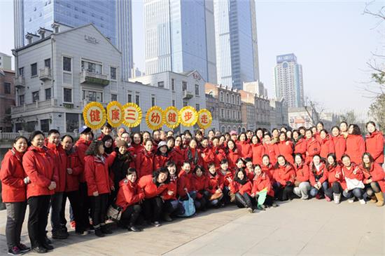 2013年的省三幼,是艰难的一年、是值得纪念的一年、更是充满希望的一年。在省示范基地项目建设的特殊时期,我园创新娱乐形式,持续开展“健康三幼 健康年”活动,由往年常规的园内运动会改为“健步走”环湖建设运动,以提高职工们参与锻炼的积极性。12月28日上午,在园办和工会的精心组织下,全园教职工统一身着火红的园服,相聚在楚河汉街亲水平台,开展了一场充满生机与活力的健步走运动。