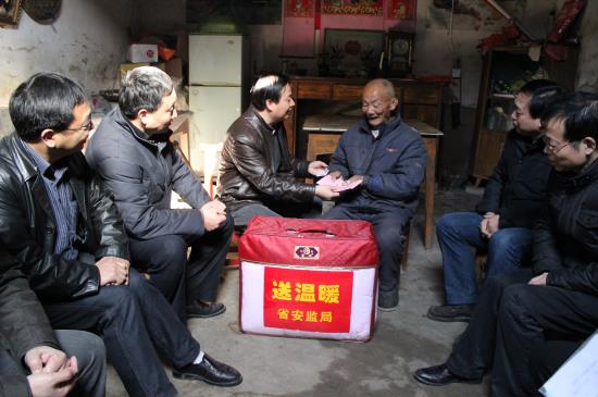 春节前夕,省安监局组织党员干部深入麻城市龟山镇石陂、花桥河、石头咀、西埠冲等四个驻点村,开展了以“送温暖、送全家福、送惠农政策、送安全文化”为主要内容的“四送”活动,做到把节日温暖送到困难群众的家,把全家福送到留守老人的家,把惠农政策和安全文化送进所有村民的家,有力推进了“三万”活动深入开展,增进了党员干部与革命老区群众的感情。