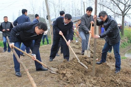 3月20日,省政府法制办全体党员干部在办党组书记、主任张绍明的带领下,赴我办“三万”活动驻点村小庙、何桥开展义务植树活动。