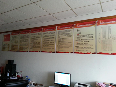 为进一步强化机关基层组织建设工作,扎实推进“五个基本”、“七个体系”建设,着力夯实党建工作基础。湖北省审计厅机关党委统筹安排,精心组织,投入近3万元制作公示牌,将党旗、誓词、党员的权利和义务、“三会一课”制度、党员组织生活会制度、机关党支部工作职责、支部创先争做公开承诺和审计组临时党支部管理办法等统一制成牌匾挂在各党支部活动室的墙上。为积极创建基层党建工作示范点和支部规范化建设打实了基础,为厅机关党建工作增添了色彩。