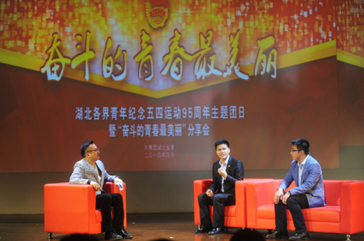 4月30日,我省各界青年代表欢聚一堂,开展纪念“五四”运动95周年主题团日活动,畅谈“奋斗的青春最美丽”,庆祝“五四”青年节。省委常委、省委统战部部长张岱梨出席活动并讲话,省政府副省长甘荣坤出席活动并为“湖北青年五四奖章”获得者颁奖。省委副秘书长胡菊萍、省政府副秘书长聂昌斌,团省委书记张桂华、团省委副书记吴朝安、张澎、金鹏,省委组织部部务委员周业军,省委宣传部副部长喻立平,省委高校工委副书记、省教育厅副厅长严学军,省公务员局副局长张小鸣,武汉市东湖高新管委会主任张文彤等出席活动。