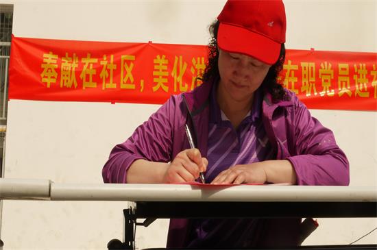 洪山路辖区共17个省直单位参加了“奉献在社区,美化洪山路”在职党员进社区清扫活动。在启动仪式上,党组成员、纪检组长朱瑛代表省科协与洪山路社区签订了《共建单位环境卫生承诺书》。承诺做好单位门前、院落周围地面的垃圾清扫,清除垃圾死角;承诺维护好单位门前、院落周围的街容街貌,制止乱堆乱放、摆摊设点等违法行为;承诺布置、种植、管护好单位周边树木和绿化设施。