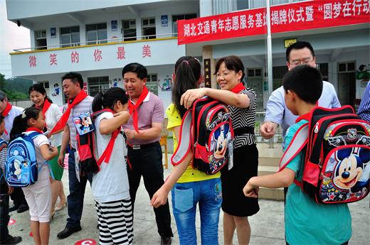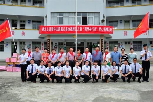 为培育和践行社会主义核心价值观,深入贯彻落实5月28日在襄阳召开的全省推进志愿服务制度化工作会议精神,5月29日,省交通运输厅在恩施鄂西希望小学举行“湖北交通青年志愿服务基地揭牌仪式暨‘圆梦在行动’爱心捐赠活动”。省交通运输厅副厅长程武、省直机关团工委书记杨宗艳出席活动。