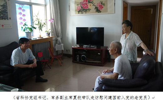 三是走访慰问党员。“七一”前夕,省科协机关党委对本单位建国前入党老党员和生活困难党员进行了一次调查摸底。6月30日下午和7月1上午,省科协党组书记、常务副主席夏航带队,上门走访慰问了省科协建国前入党的老党员和生活特别困难的党员,仔细询问党员干部的生活困难,听取党员干部的意见建议,让党员干部感受到了党组织的关心和温暖。