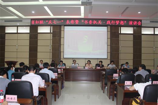 7月1日上午,省妇联在知音传媒集团多功能厅举行了庆祝建党93周年表彰暨“书香机关•践行梦想”演讲会。省妇联机关全体党员干部、离退休党员干部、直属单位党组织负责人及部分党员代表参加了会议。省妇联主席、党组书记彭丽敏宣读表彰决定,省妇联副主席、机关党委书记叶景丽主持会议。