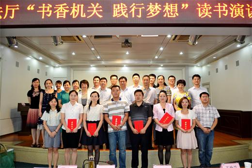 7月3号,省司法厅举办“书香机关•践行梦想”读书演讲比赛,来自厅机关16个党支部20名选手参加本次比赛。比赛由厅机关党委组织策划,厅机关纪委书记陈进华同志主持。厅党委委员、政治(警务)部主任邓传荣同志宣布比赛开始,省直机关工委、团省委、省直机关事务局的相关领导应邀担任评委。经过三个小时的激烈角逐,厅法制宣传处吕凡同志荣获一等奖,厅纪委(监察室)严蕾、厅政治(警务)部组宣处江峰同志分获二等奖,厅法律援助中心王丹、律师公证管理处李莉、厅办公室刘欣同志分获三等奖。