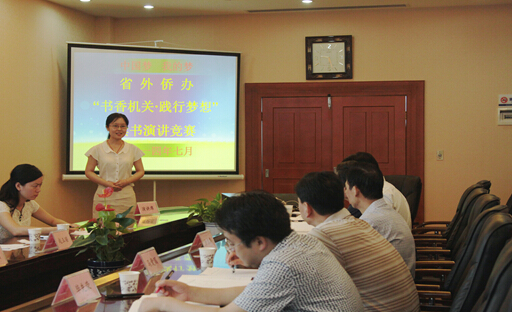 省外侨办党组和机关党委高度重视“书香机关•践行梦想”读书演讲竞赛活动,专题研究制订了《活动方案》和《实施方案》,为机关干部职工购买《马克思主义哲学十讲(党员干部读本)》、《世界社会主义五百年(党员干部读本)》、《习近平总书记系列讲话精神读本》、《苦难辉煌》、《浴血荣光》、《大国兴衰:全球化背景下的路线之争》、《中国2020:一个新型超级大国》“七本好书”,引导牢固树立“读书修身、读书增智、读书长才”的学习理念。各党支部动员干部职工积极参加、踊跃报名。机关党委专门成立读书演讲竞赛活动组委会,认真制订竞赛规则、程序和评分标准,公开选聘评委,确保活动参与广泛、公平公正,把读书演讲竞赛打造成外侨办干部职工学习提高、展示才华的舞台,真正起到了营造学习氛围,激发工作干劲,提高能力素质的目的。