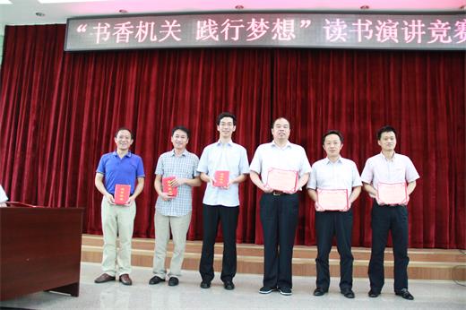 此次读书演讲竞赛活动,是省直机关工委三年一轮回的第一个主题文化活动,是我办机关党建、文明创建和目标责任管理的一项重要内容,也是体现办机关“书香机关”读书成果、展现干部面貌的重要契机。自2月份活动展开以来,全办机关干部突出“市场大学”这个重点内容,紧紧围绕李鸿忠同志和其他领导干部推荐的书籍,紧密联系财经、“三农”、科教工作和学习实际,进行了广泛的学习阅读,办机关还购买了《中国梦》、《中国触动》、《感动的力量》、《世界社会主义五百年》、《马克思主义哲学十讲》等书籍,全办读书学习蔚然成风。7月份,活动进入实施阶段,机关党委及时制定了演讲竞赛实施方案,确定了比赛时间、规程、奖项设置和有关要求。各支部根据办里安排,认真进行了初选预选,确定参赛选手。18日下午,读书演讲比赛正式进行,办领导和各处负责人担任评委,选手按抽签顺序依次出场,选手们的演讲有的抑扬顿挫,有的娓娓道来,有的富含哲理,有的真挚感人;有践行“三农”梦想的慷慨激昂,也有沉浸智慧书海的悠然情致。赛场时时响起热烈的掌声,最后秘书处张凯同志的一篇《我读书我快乐我奉献》,激情讴歌了为我国“三农”发展做出重大贡献的杂交稻专家袁隆平、“谷子之父”赵志海等专家学者的高尚情操和奉献精神,表达了自己热爱“三农”、献身“三农”的赤子之心,博得评委和观众的一致好评,荣获一等奖。赛后进行了隆重的颁奖仪式,省委副秘书长、省委财经办(省委农办)主任刘兆麟同志对获奖选手表示了衷心祝贺,办领导与全体参赛选手合演留念。