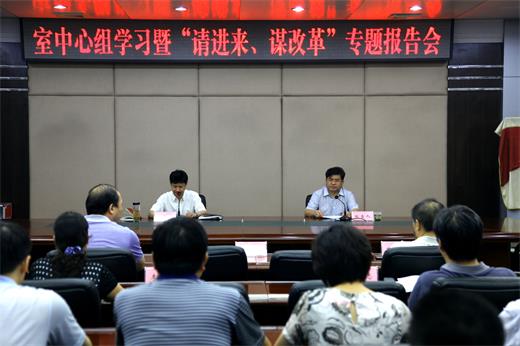 8月27日,省委政研室举办中心组(扩大)学习暨“请进来、谋改革”第一场专题报告会,邀请省国资委主任文振富同志为大家作关于国资国企改革的专题报告。省委副秘书长、室主任赵凌云同志主持会议并讲话。
