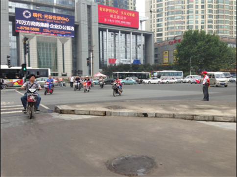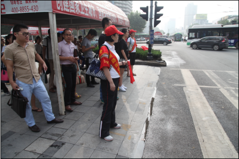 活动中,志愿者在中南路和武珞路交会的路口,协助维护交通秩序,对市民的不文明行为进行劝导。看到一名市民正在滚滚车流中闯红灯过马路,一名志愿者马上过去制止;看到电动车在机动车道上行驶,一名志愿者在路口挥舞着小红旗,引导电动车走非机动车道;很多市民不熟悉路况,志愿者们热心指路……忙碌的志愿者们成了一道靓丽的风景线。