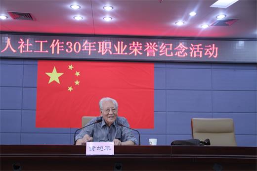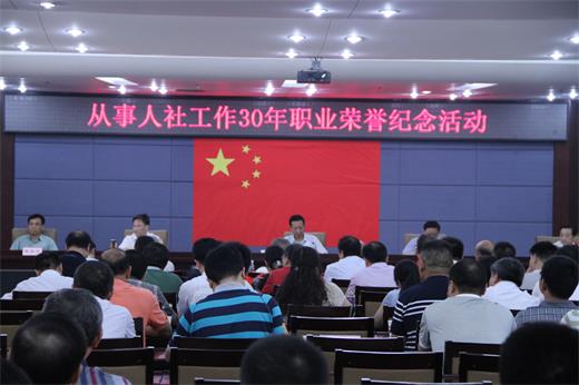 纪念活动在庄严的国歌声中开幕。当63位从事人社工作30年的老同志代表依次走上前台时,全体厅领导起立致敬,全场响起了热烈的掌声。30位年轻干部为他们献上红花,接过他们的传承棒。2位荣誉工作者结合30年工作体会,抒发了对人社事业的一份坚守、一份奉献、一份热忱。