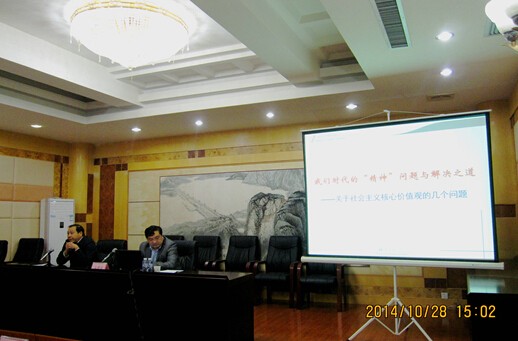 党的十八大提出加强社会主义核心价值体系建设,要倡导富强、民主、文明、和谐,倡导自由、平等、公正、法治,倡导爱国、敬业、诚信、友善,积极培育和践行社会主义核心价值观。10月28日下午,为帮助机关党员干部深入学习领会和践行社会主义核心价值观,省外侨办举办“我们时代的“精神”问题与解决之道”专题辅导报告会,特邀请华中师范大学副教授、《社会主义研究》副主编王建国作辅导报告,省外侨办党组中心组成员及机关全体党员干部和湖北省对外友好服务中心全体党员100多人参加讲座。