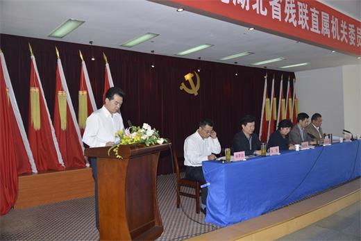 省残联党组成员、副理事长朱志斌代表省残联直属机关党委第四届委员会作了工作报告。报告全面总结了省残联直属机关党委第四届委员会的工作。他指出,过去四年来,省残联机关党委按照中央和省委的部署,在省直机关工委和省残联党组的领导与指导下,努力建设“学习型、服务型、创新型” 机关建设,在深入推进学习型党组织建设,加强理论武装;着力加强基层党的组织建设,充分发挥支部战斗堡垒作用;深入推进党风廉政建设,促进党员干部作风明显转变;突出党组织的领导核心作用,加强机关建设等方面取得了显著成绩。同时,也指出过去工作中还存在的不足,要求省残联新一届机关党委和直属机关纪委要克服这些不足,要以邓小平理论、“三个代表”重要思想、科学发展观为指导,按照“党要管党、从严治党”的要求,围绕中心、服务大局,以改革创新精神,强化党员干部职工中国特色社会主义理论自信、道路自信、制度自信,牢固树立社会主义核心价值观,建立健全党建工作机制,创新基层党组织工作方式方法,加强党风廉政建设,改进机关作风,密切联系群众,增强党组织的凝聚力和机关活力,全面提高机关党的建设水平,充分发挥机关党组织的战斗堡垒作用和党员的先锋模范作用,为全省残疾人事业科学发展快速发展提供坚实的思想政治保障、作风保障、队伍保障。