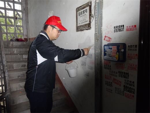 我办参加志愿活动人员在社区干部的带领下分组冒雨前往清扫地点,大家自备小工具,有的利用铁铲清除“牛皮癣”,有的涂抹乳胶漆美化墙面,有的挥动扫帚清扫果皮纸屑。活动现场气氛浓烈,党员干部干劲十足,赢得了社区居民的赞赏好评,这也是全市精神文明创建如火如荼场面的一个缩影。经过一上午的辛勤劳动,大家清除了楼道“牛皮癣”和巷道垃圾,不放过任何一个卫生死角,为社区居民创造了良好的生活环境。