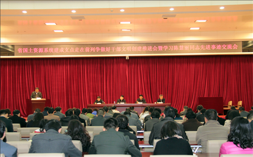 11月26日,全省国土资源系统“建成支点,走在前列,争做好干部” 文明创建推进会暨学习陈慧丽先进事迹座谈会在省厅召开,会上6名同志交流了“学先进、创一流”的经验及成效。厅党组书记、厅长孙亚对全系统在开展党的群众路线教育实践活动中,学习陈慧丽先进事迹、加强作风建设和文明创建情况进行了总结,对争当“清廉为官、事业有为”好干部和深化文明创建工作、提升文明创建水平进行动员部署。省直机关工委副书记于春利出席并作重要讲话。在家的厅领导,各市(州)、直管市、神农架林区国土资源局分管领导及行政服务“窗口”负责人,部分县(市、区)国土资源局分管领导及行政服务“窗口“负责人和厅机关全体党员干部参加了会议。