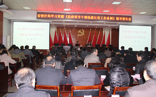 12月2日上午,省统计局举行党组(党委)中心组学习扩大会。省委组织部副部长刘艳红同志应邀作《学习贯彻〈党政领导干部选拔任用工作条例〉确保选人用人风清气正》的专题报告。省统计局局党组书记、局长李克勤主持报告会。