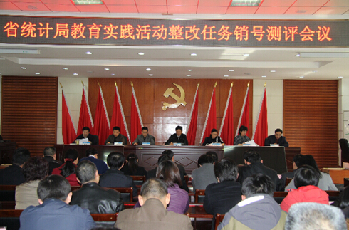 按照中央和省委教育实践活动领导小组的统一部署,3月12日,省统计局召开教育实践活动整改任务销号测评大会。局党组班子成员,机关各处室、直属事业单位主要负责人和部分职工代表共65人参加测评会议,局监察室全程监督。