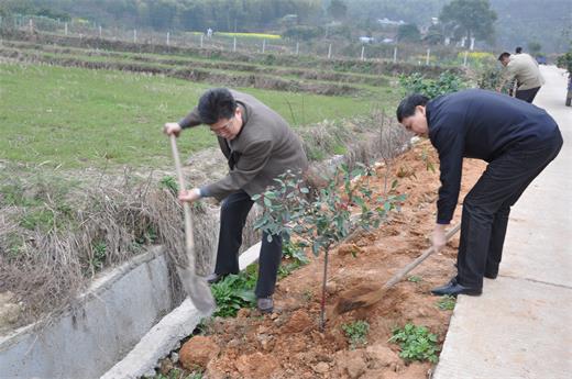 近年来,省供销社把开展义务植树与生态文明建设紧密结合,充分利用开“三万”活动这个平台,组织机关干部积极开展义务植树活动。除做好办公区、职工住宅区环境美化、植树裁花外,每年3月份,省社领导带领机关干部赴“三万”驻点村开展新春义务植树活动,以实际行动为美好乡村添一片新绿,并将开展义务植树活动作为转变机关作风、推进机关效能建设的有效载体。据统计,连续4年,省供销社在石首市东升镇毕家塘村、桃花山镇李花山村累计植树3000余株。