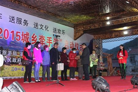 为更好地推动“三万”和旅游扶贫工作,让旅游在乡村经济社会发展和人民群众脱贫致富中发挥更大作用,省旅游局高度重视,把湖北旅游扶贫“2015城乡牵手游”活动作为今年“三万”活动的重要内容进行组织实施。这次活动,省旅游局联合省扶贫办、楚天都市报组织了近30名志愿者和爱心人士到石桥坪村送服务、送爱心、送文化、送欢乐,为广大村民提供免费医疗、法律咨询、结对帮扶献爱心、家电维修、文艺演出、葡萄种植咨询等服务,受到当地村民热烈欢迎。武汉京都结石病医院、海尔集团、武汉爱心人士还赠送了价值2万余元的文体用品和爱心捐款。来自华中科大等单位的三位古民居、葡萄种植、乡村游领域的专家深入调研摸底,规划指导乡村发展。