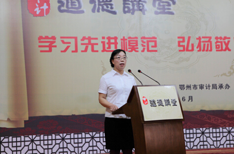 此次道德讲堂主题是“学习先进模范,弘扬敬业精神”,主讲人为全国审计机关先进工作者、鄂州市审计局纪检组副组长、监察室主任王小昧同志。