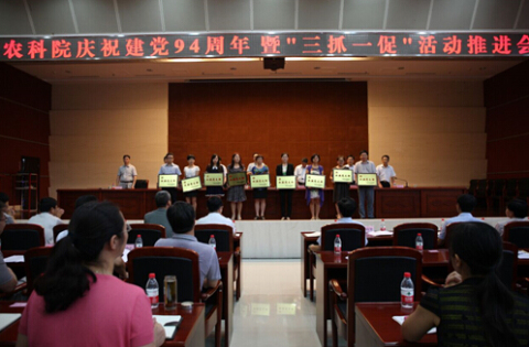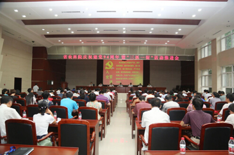 6月30日下午,省农科院党委召开庆祝建党94周年暨“三抓一促”活动推进会,庆祝中国共产党94岁生日,表彰红旗党支部、先进基层党组织、优秀共产党员和优秀党务工作者,并深入推进全院“三抓一促”活动。院党委书记刘晓洪出席会议并讲话,院长喻大昭主持会议,全体院领导出席会议。