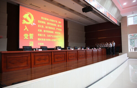 会议在庄严的《国歌》声中开始,随后,院党委书记刘晓洪带领全体与会党员重温了入党誓词。