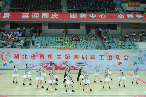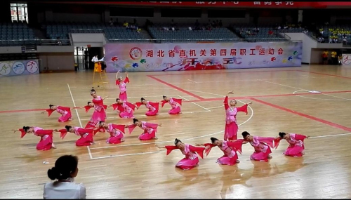 9月9日,湖北省直机关第四届职工运动会开幕式暨健身舞项目竞赛在洪山体育馆举行。省委、省人大、省政府、省政协领导出席开幕式,副省长任振鹤致辞,省委常委、省委秘书长、省直机关工委书记傅德辉宣布运动会开幕。省法院党组副书记、副院长覃文萍代表省法院出席开幕式。省直机关114个单位、4000多名运动员参加了开幕式,60个单位代表队参加了健身舞项目的竞赛。