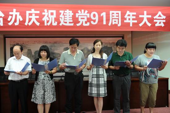 省委台办第四支部党员在纪念建党91周年大会上进行诗朗诵,抒发了对党的无限热爱之情