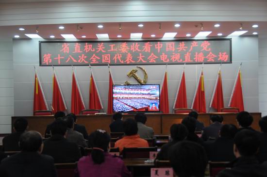 省直机关工委组织全体干部职工集中收看十八大开幕式盛况