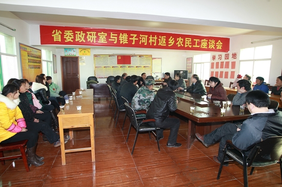 为响应省委“万名干部进万村洁万家”活动号召,让机关干部“接地气”、受教育,1月14日上午,省委政研室全体干部职工在室副主任郭倡民、梅学书、张世华的带领下,赴团风县总路咀镇锥子河村开展集体劳动,走访慰问困难群众,召开返乡农民工座谈会,检查了解室工作组工作情况。