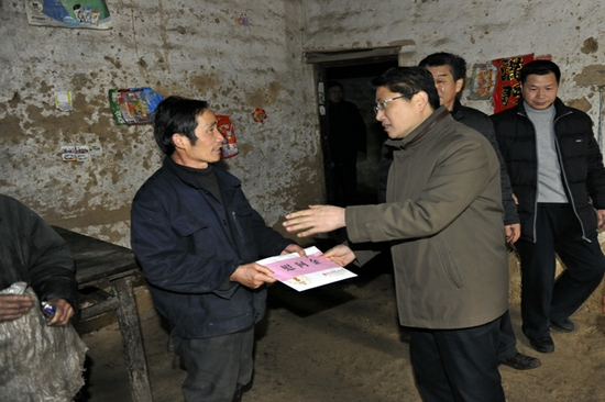 省法院党组成员、政治部主任田昌兵慰问村民黄海欧兄弟三人。黄家兄弟三人,黄海欧的两个兄弟是先天性痴呆,田昌兵主任送上慰问金和慰问物品,并叮嘱黄海欧,请他好好照顾兄弟二人。