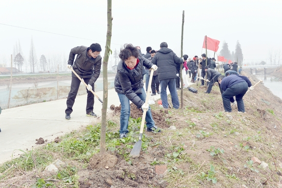 1月17日,省财政厅党组成员、综改办主任(正厅级)、副厅长洪流同志带领厅机关各支部(总支)党员代表一行36人,赴小港管理区开展义务植树和清洁家园活动。在参加此次活动的党员代表中,有支部书记5名,副处级以上干部17名,青年党员14名,大家轻车简行,乘坐一辆大巴车,冒着寒风直接来到小港管理区二大队劳动工地,用自带劳动工具,以饱满的劳动热情,同当地干部群众以及财政厅“三万”工作队队员一起,在沟渠旁扬锹挖坑,扶苗培土,新植树200多株,随后还对沟渠两旁的杂物垃圾进行了仔细清理,捡拾垃圾10多袋。通过努力,二大队输水渠两侧树苗成排,整洁一新。在劳动过程中,洪流厅长不顾自己是老领导和女同志,率先垂范,不怕脏不怕累,与其他党员一起始终战斗在劳动的第一线。在劳动结束后,洪厅长与当地干部群众、驻点队员亲切交谈,仔细询问了“三万”活动进展情况,要求财政厅工作队在严格按照方案和规划推进“三万”活动的同时,也要加强环保宣传和引导,以自身行动带动群众转变观念,形成良好的行为规范,树立文明新风,推进农村生态文明建设。为不给基层增加负担、不扰民,劳动结束后全体人员在劳动现场拿出携带的干粮,吃了一次别样的劳动“野餐 ”。