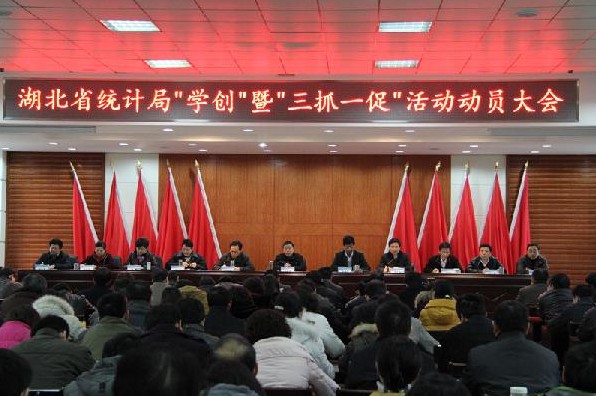 2月19日上午,省统计局召开“学创”和“三抓一促”活动动员大会。会议由李克勤同志主持。会上,蔡受清同志传达了省委、省政府“学习贯彻十八大、争创发展新业绩”主题实践活动电视电话会议,以及省直机关“抓学习、抓作风、抓环境、促跨越”活动会议精神,郑新华同志传达了习近平总书记在十八届中纪委二次全会上的讲话以及十届省纪委三次全会精神,局长毛凤藻在大会上作了动员讲话。