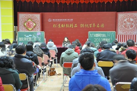 2013年2月21日上午,省直机关第三幼儿园在礼堂召开“抓学习、抓作风、抓环境,促跨越”动员大会,启动新一轮“创先争优”暨“三抓一促”活动。省三幼园长袁芒主持会议,全体教职工积极参加会议。