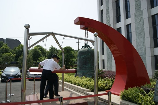 在反腐倡廉警示教育基地大楼前,党组成员、副局长曾向阳和党组成员、纪检组长笱淮远代表机关全体党员干部,共同敲响“廉政警钟”,钟声悠长而清远,喻示反腐倡廉工作要做到警钟长鸣。
