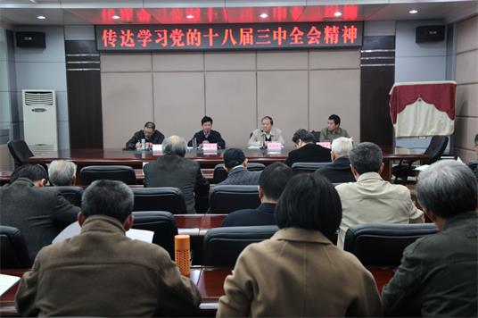 11月14日下午,省委政研室召开全室大会,传达学习党的十八届三中全会精神。省委副秘书长、室主任赵凌云同志主持会议并讲话,全室在职干部及离退休老同志参加学习。